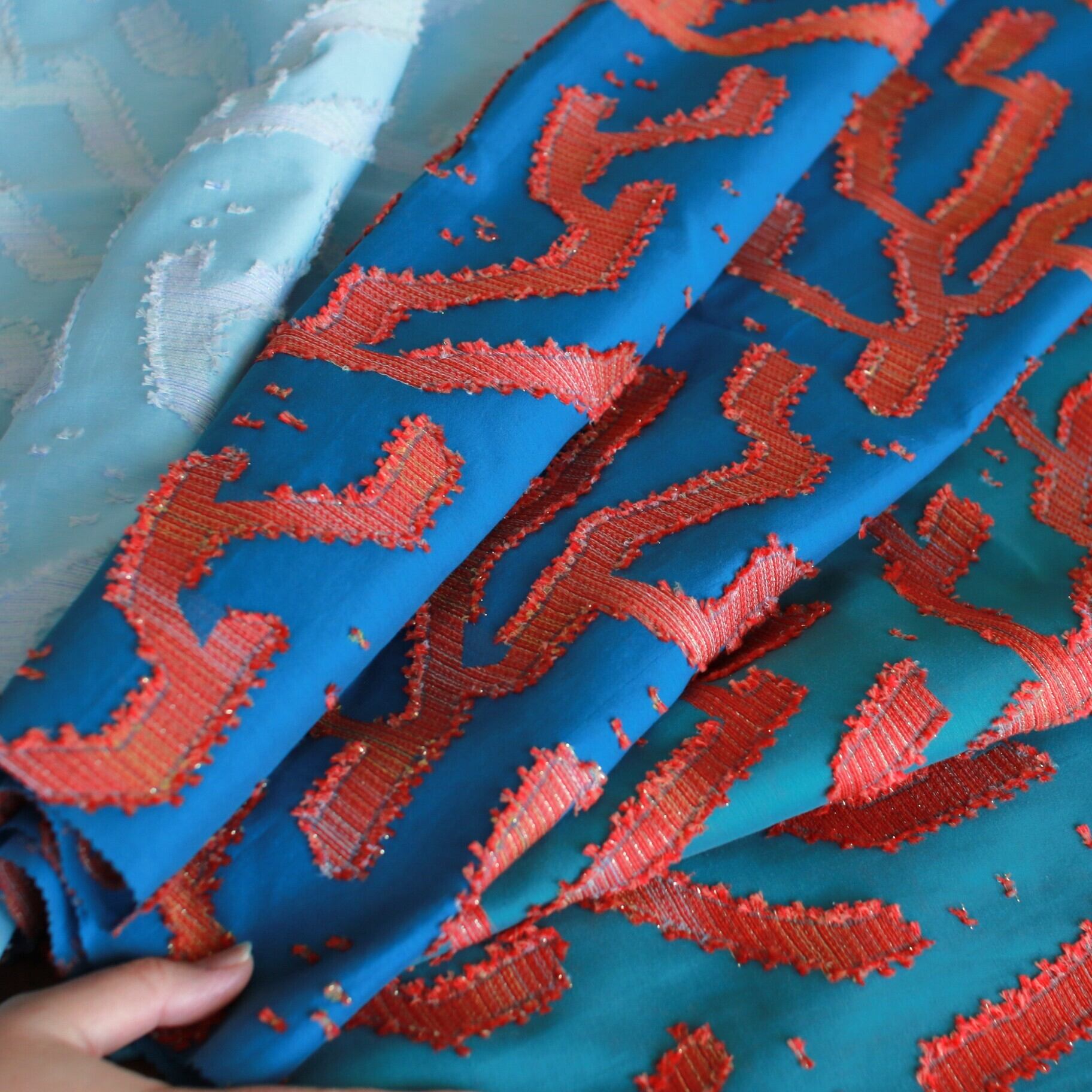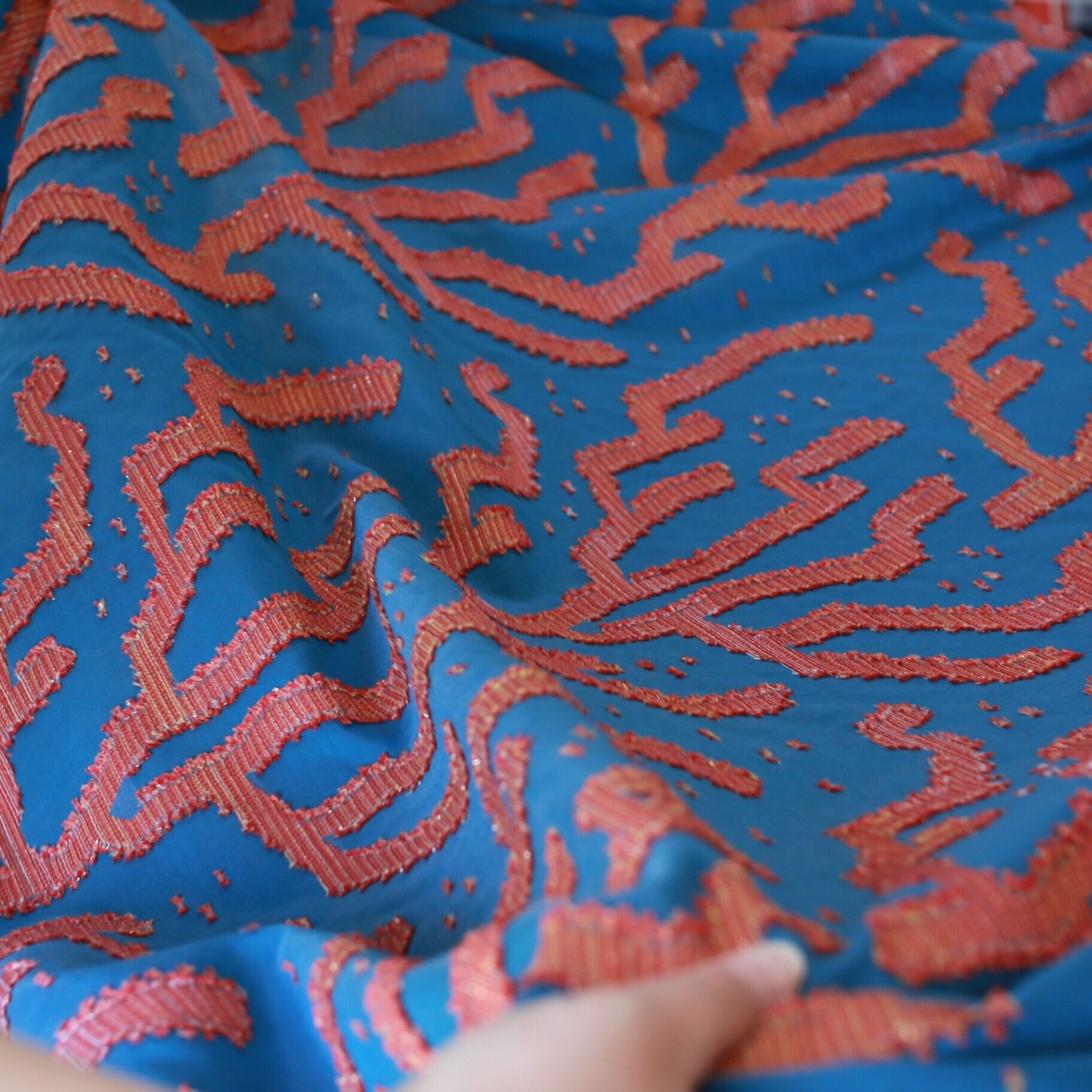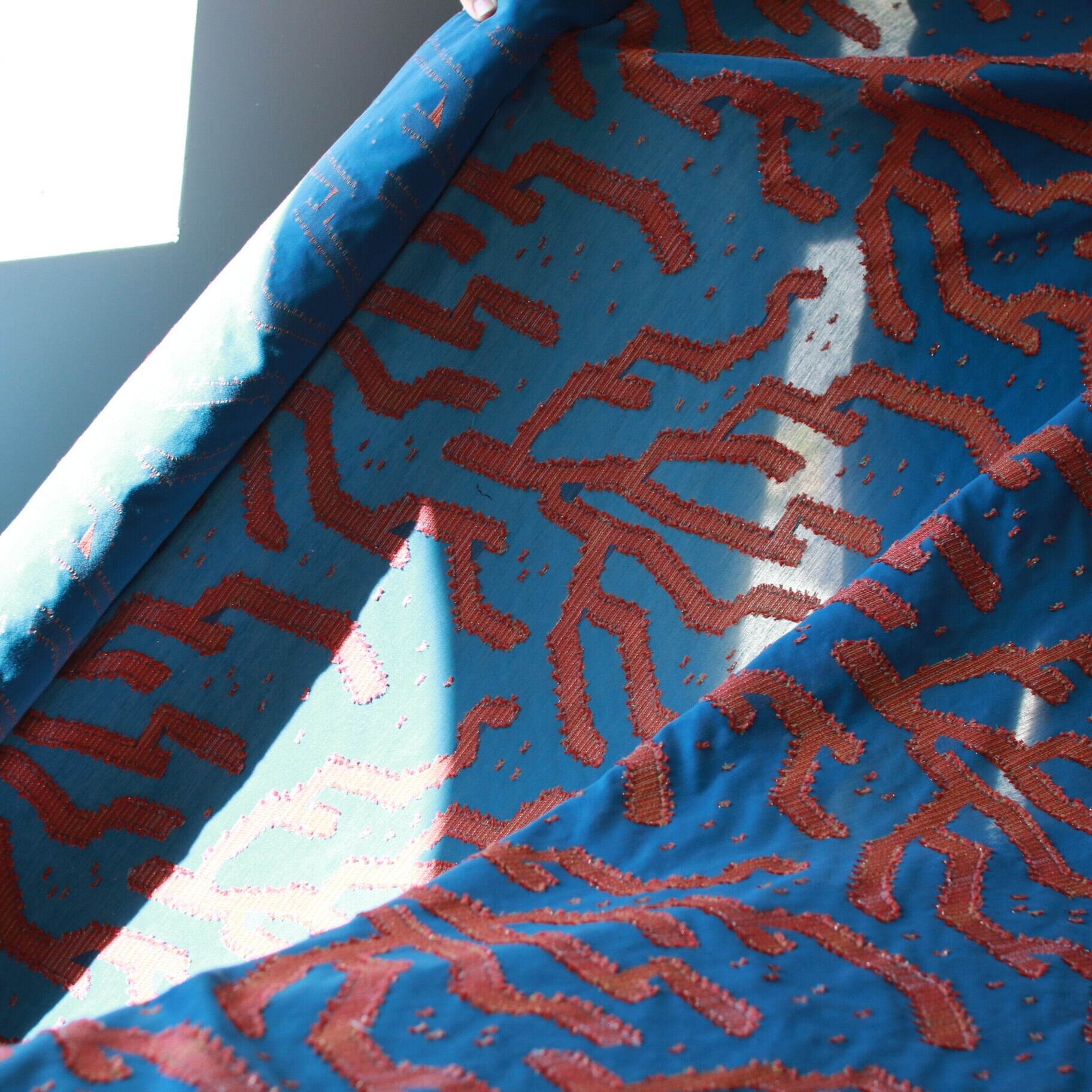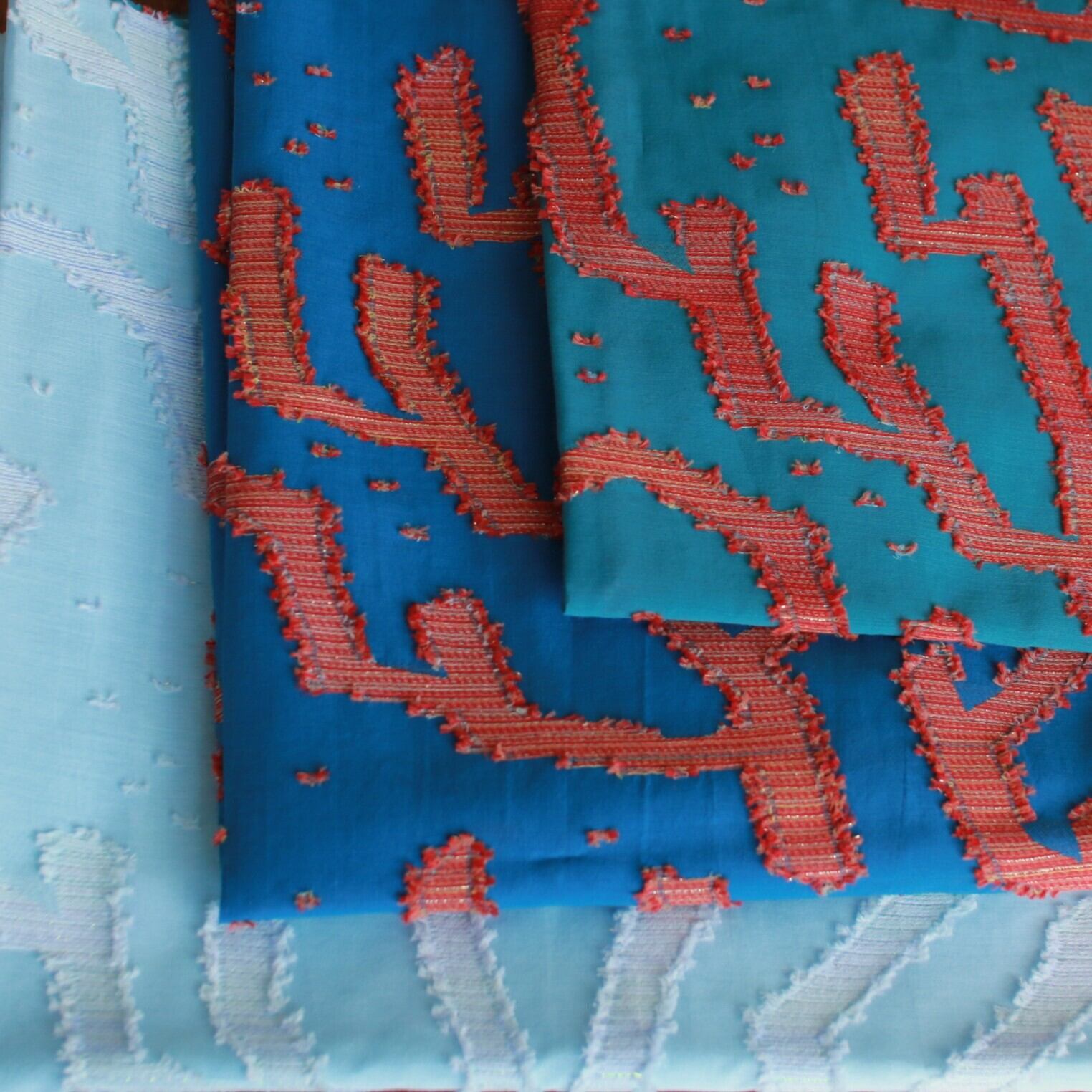 大きなサンゴのモチーフをカットジャカードで表現したテキスタイル