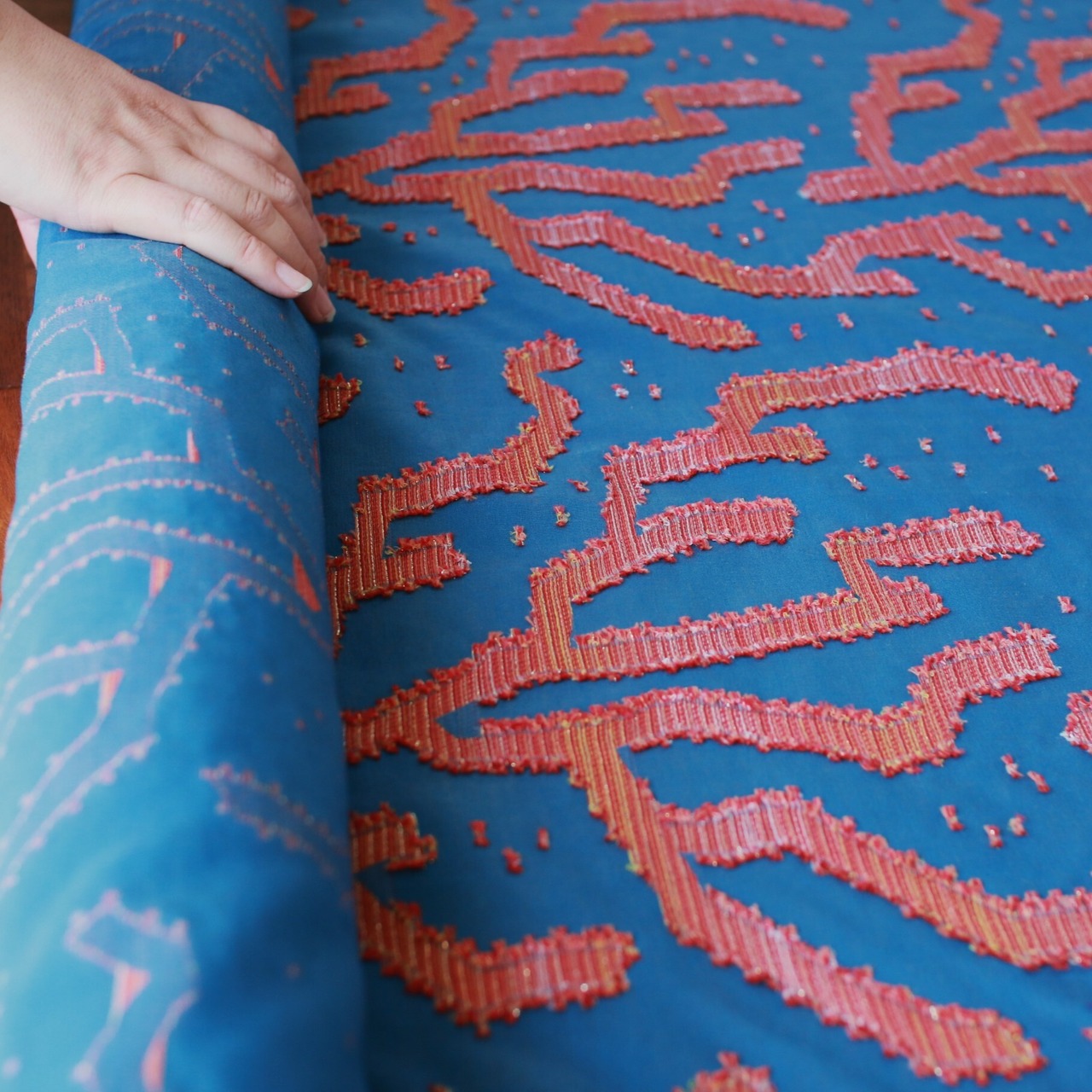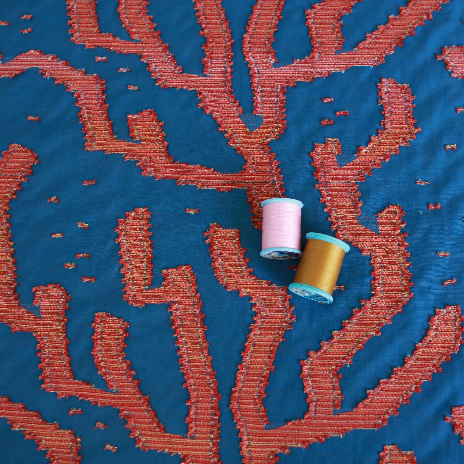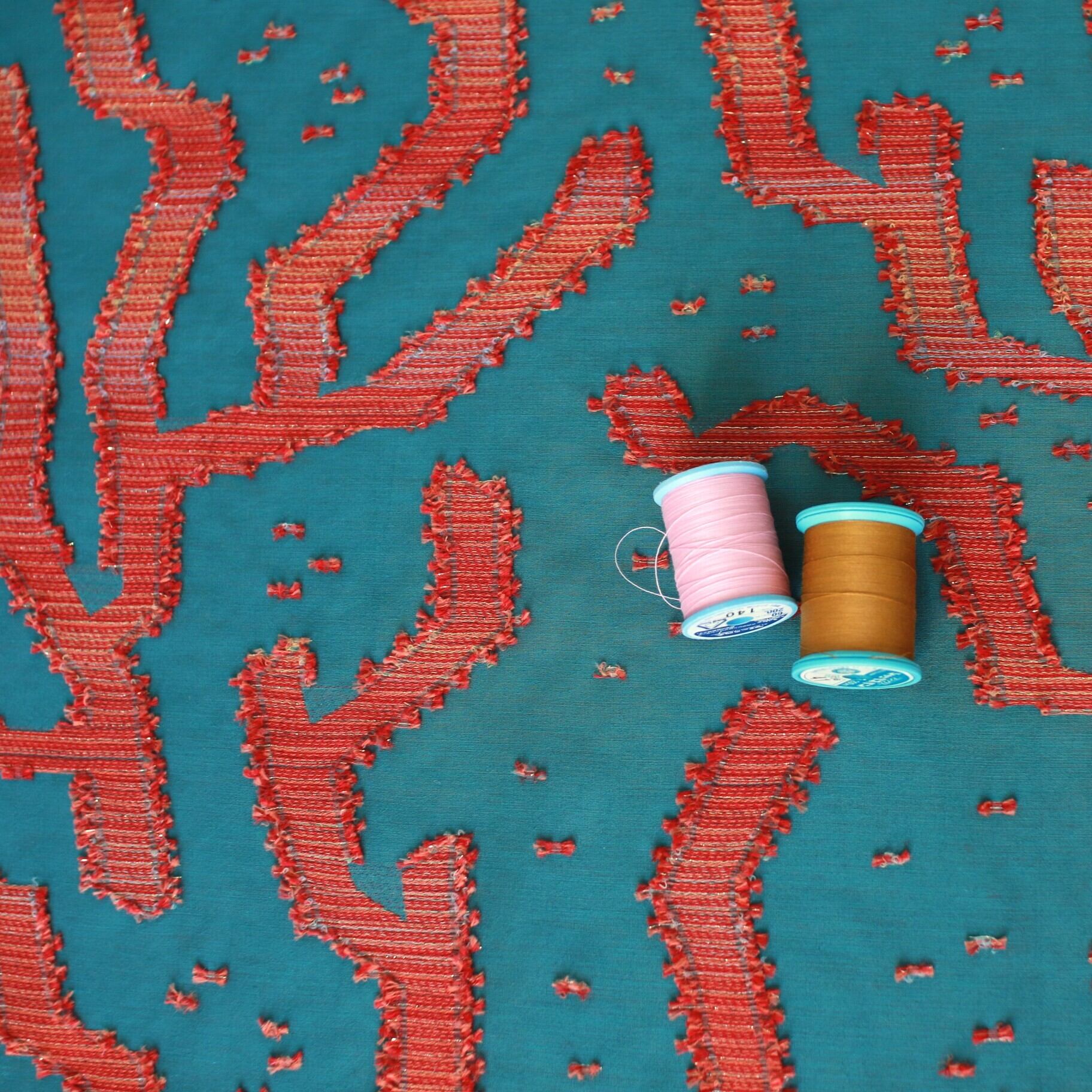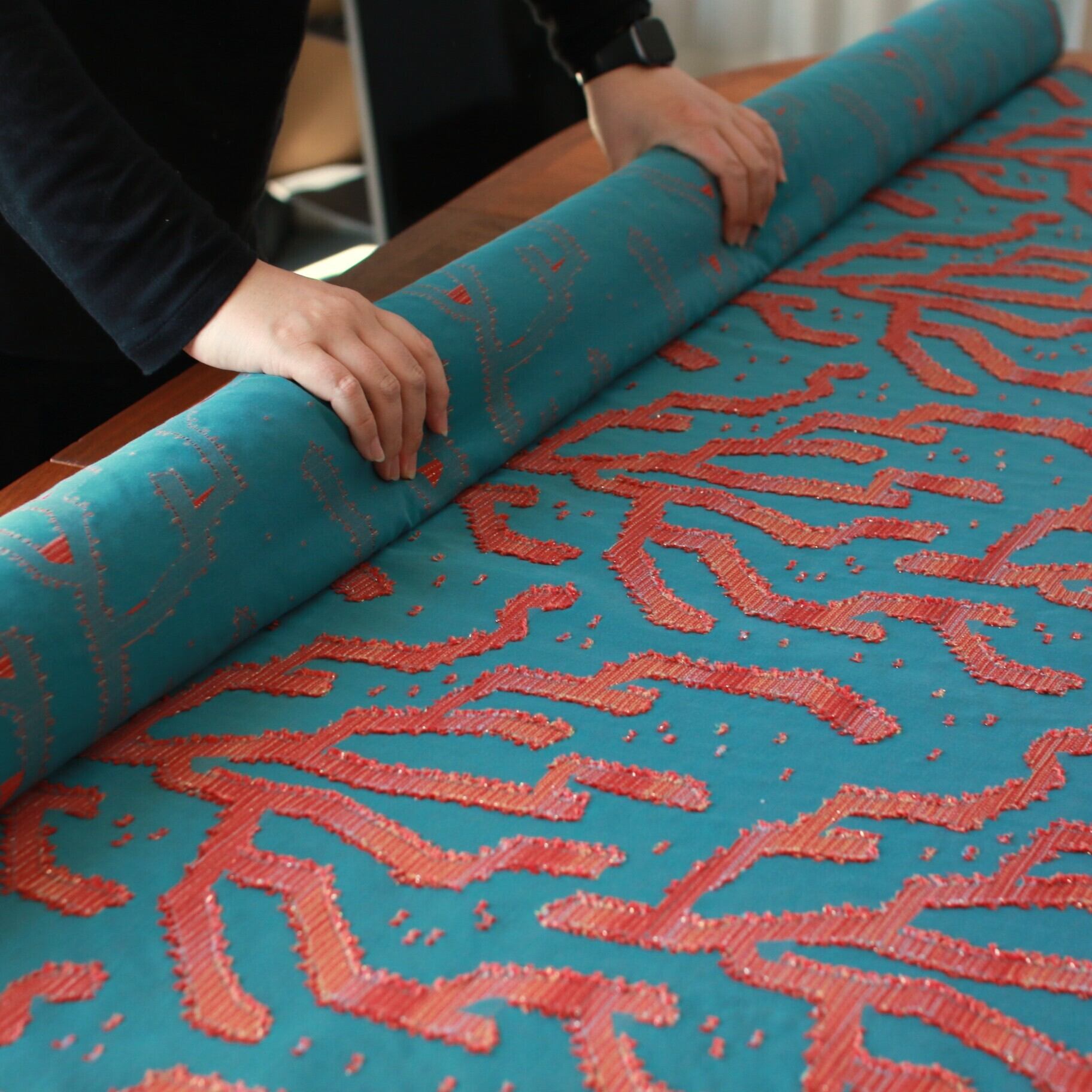 大きなサンゴのモチーフをカットジャカードで表現したテキスタイル